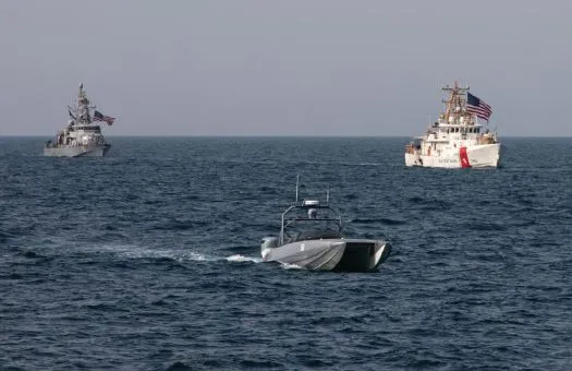 A 12-m USV participates in a task 59 exercise. (Image credit: MARTAC)