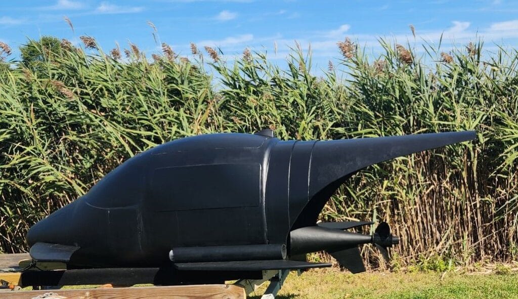 The drone’s unique shape, riblet coating and custom Buoyancy Flume Drive propulsion system makes it virtually undetectable. The drone’s hull is built with ballistic composites developed over 15 years of research and development. Inspired by shark skin hydrodynamics, the riblet-textured armor combines Kevlar, carbon fiber, ceramic, and modified fiberglass to reduce drag, enhance stealth, and improve fuel efficiency.