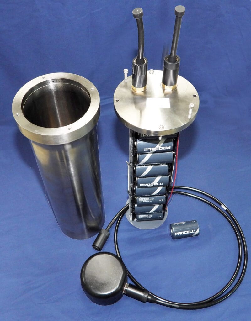 The unit uses nine common D-sized batteries with enough power for multi-week deployments. The instrument comes factory-calibrated with a 200 kHz transducer, with other transducers soon to be added. In the summer of 2024, the AZFP-nano was part of an International climate research expedition off the southeast coast of Greenland, where it was used to collect 14 kilometers of water column data in a study focused on glacial-ocean interactions.