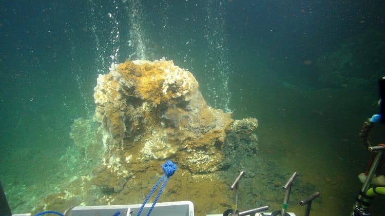 During the expedition, scientists investigated both Santorini and Kolumbo, looking at different types of hydrothermal venting, from seeps that form underwater lakes of carbon dioxide to bubbly venting at temperatures up to and exceeding 200ºC.