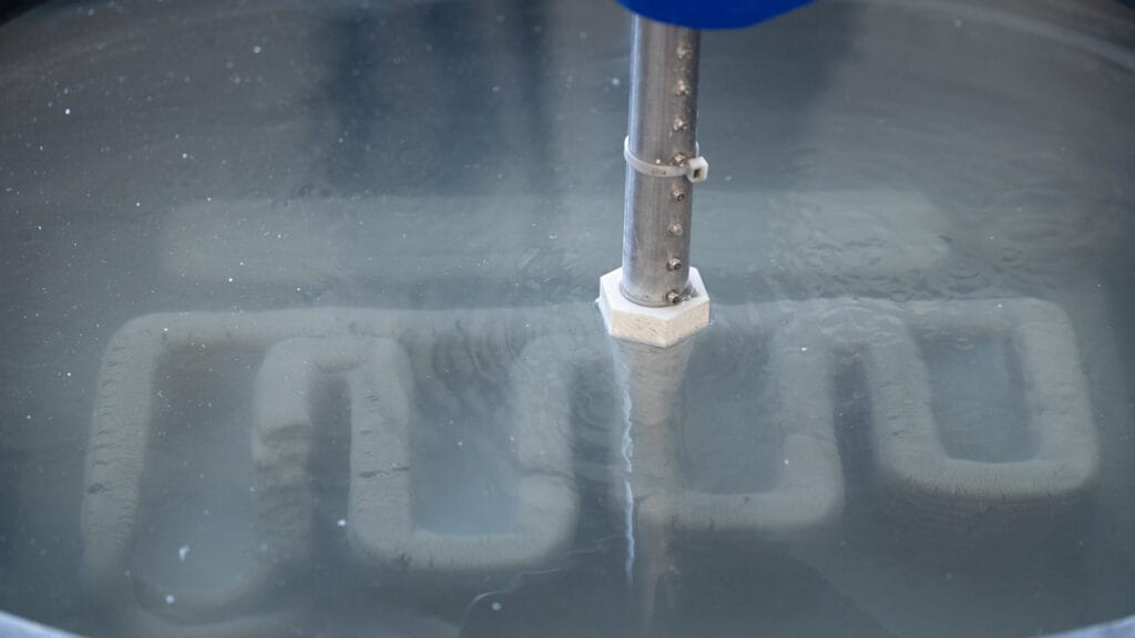 Underwater printing faces numerous challenges. Chief among them is preventing washout, in which cement particles fail to bind together during deposition, weakening the material. The typical solution is introducing admixture chemicals, but these create complications of their own.