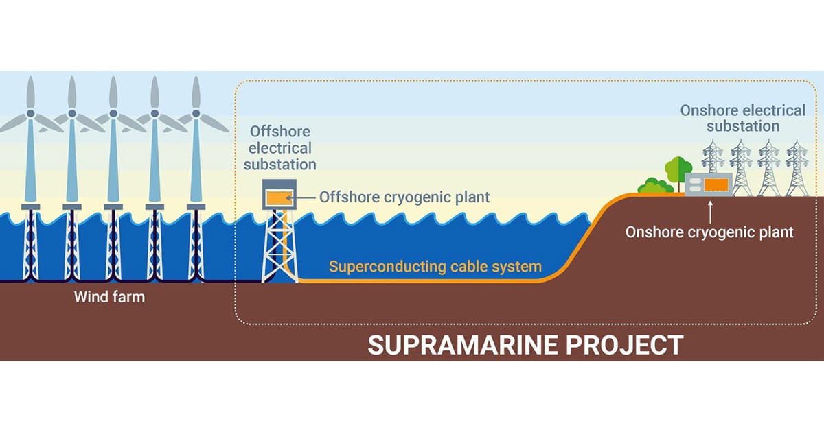 The SupraMarine project will study the electrical connection between offshore wind farms and the coastline using High-Temperature Superconducting (HTS) cables. Superconducting cables, cooled by liquid nitrogen, transport electricity with near-zero energy loss.